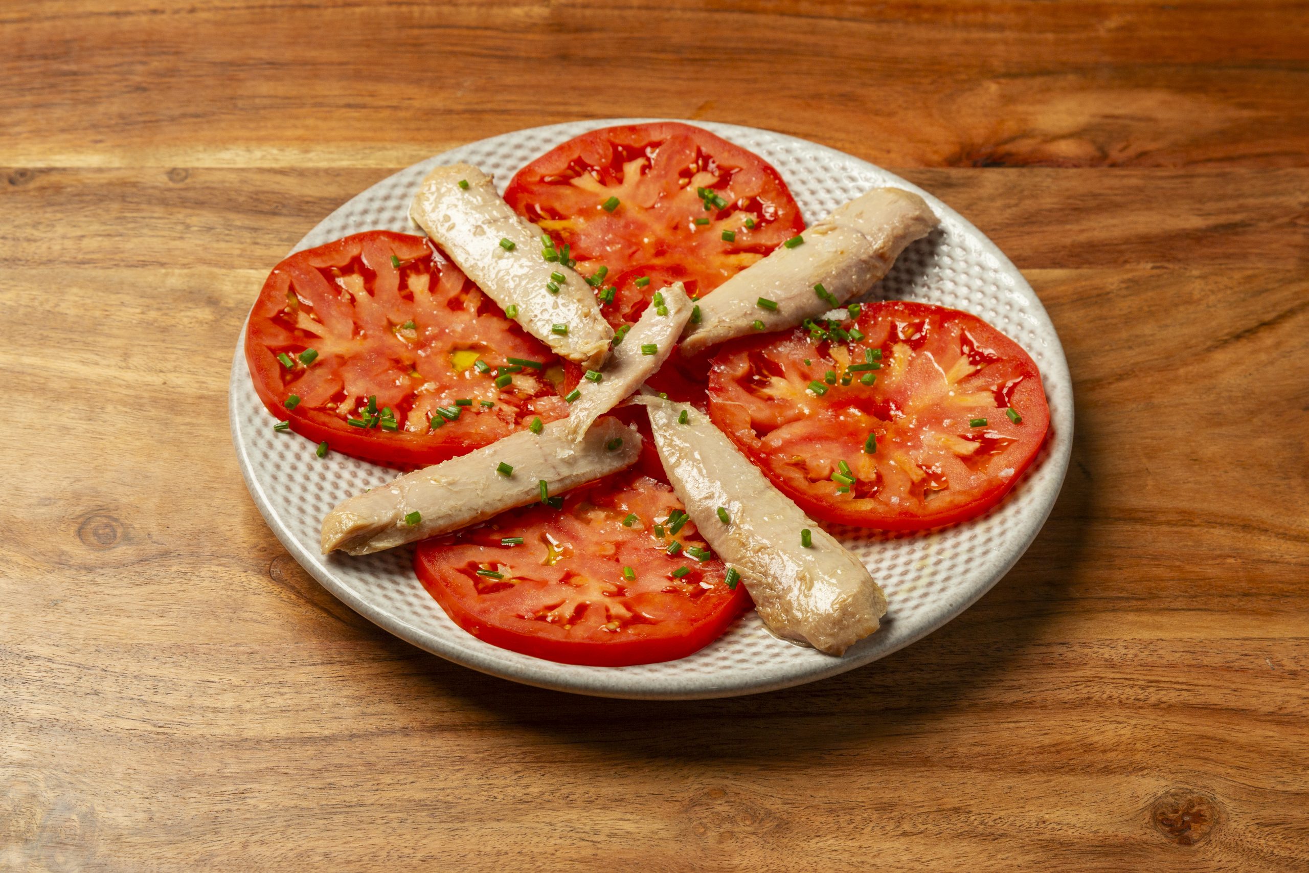 Ensalada de ventresca de atun con tomate y aove